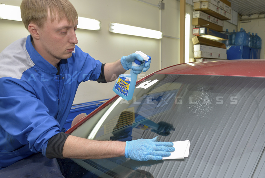 Необходимо очистить зону повреждения, т.к. загрязнение и влага на поверхности стекла сделают ремонт менее качественным и долговечным. Очищается не только непосредственно поврежденный участок стекла, но и смежные поверхности.